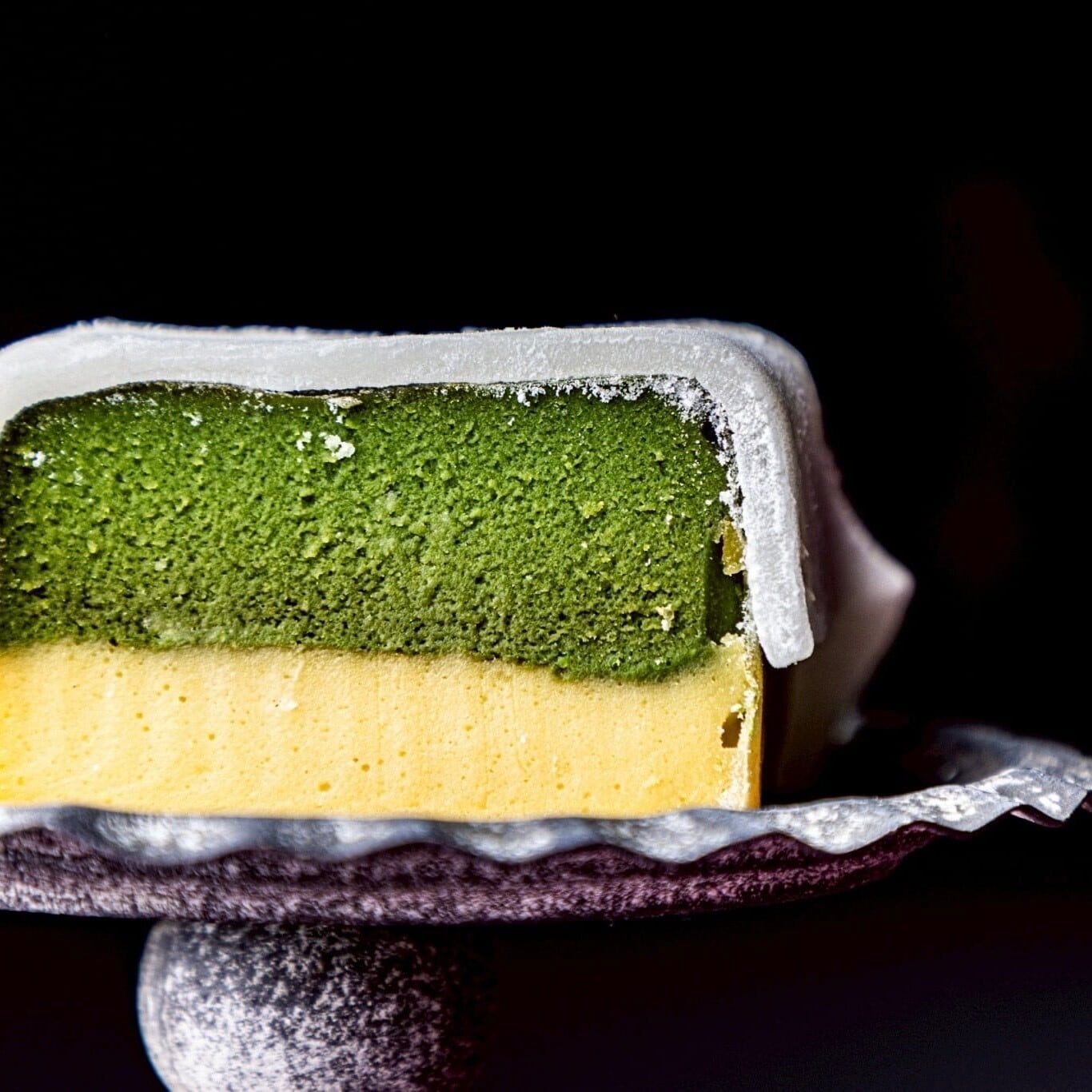 特徴:SNSでもバズり中の「芋で作ったテリーヌ」にも挑戦しました。厳選したお芋(とみつ金時)と「京都」の抹茶を贅沢に練ったものを重ね、二層のテリーヌにしました。さらに食感を楽しんでもらいたいと思い、福井に伺った際に食べて感動した福井県の銘菓「羽二重餅」を贅沢にもお布団の様にテリーヌの上に纏わせてみました。口に入れるとお餅のもちもちさと、テリーヌのねっとりさの共鳴に感動していただけるかと思います。